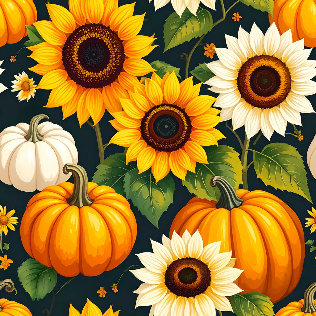 Custom Printed Fabric with Seasonal Sunflowers and Pumpkins. Choose your base fabric and print today!
